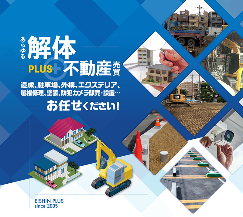 多くの解体工事を行う中で出てきた、お客様の様々なご要望やお悩みを解決するために、 エイシンでは解体工事だけでなく、様々なサービスをご提供しています。各サービス単体でのご利用はもちろん、解体工事と合わせてワンストップでご利用いただけますのでお客様にご好評いただいています。